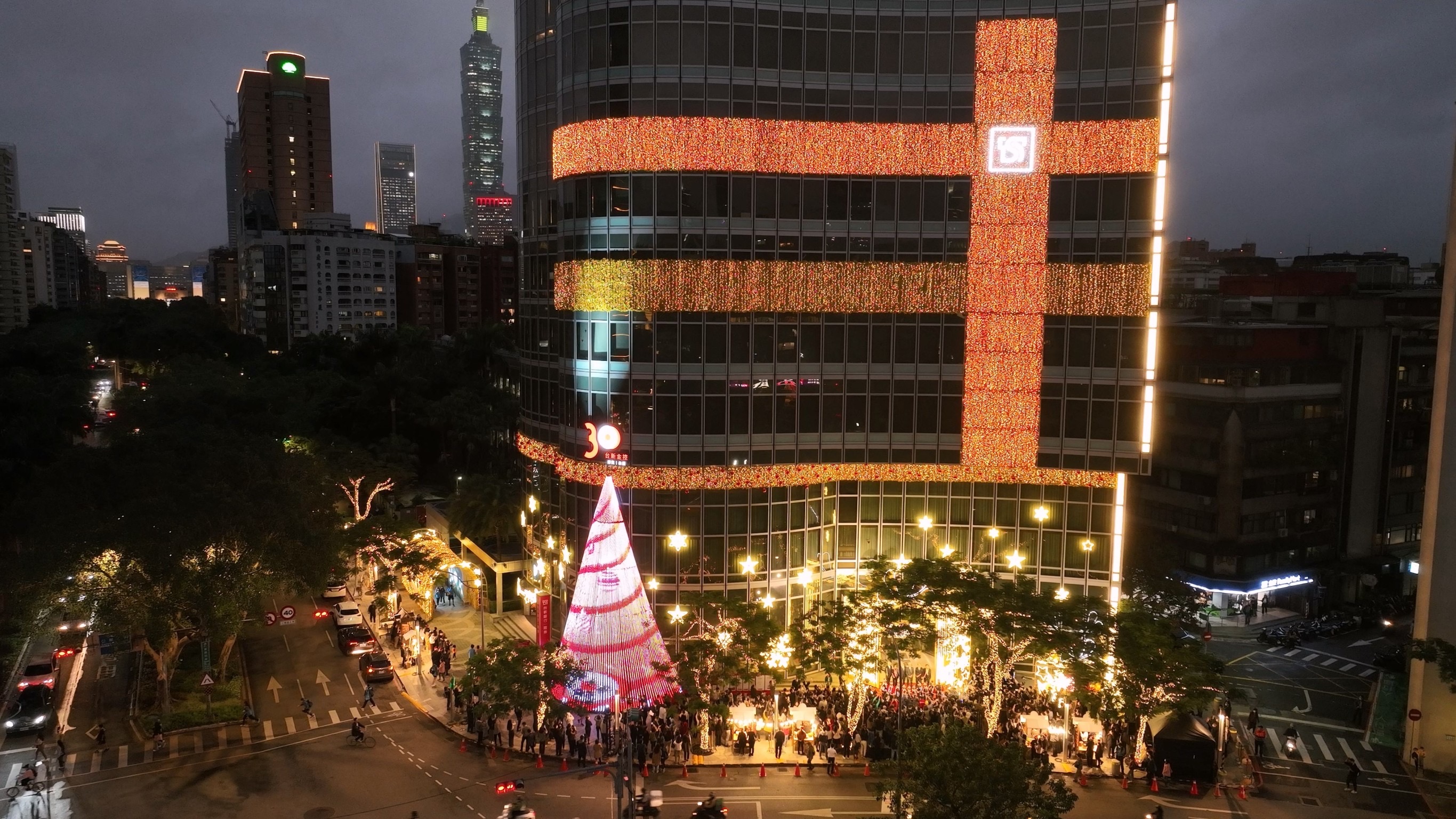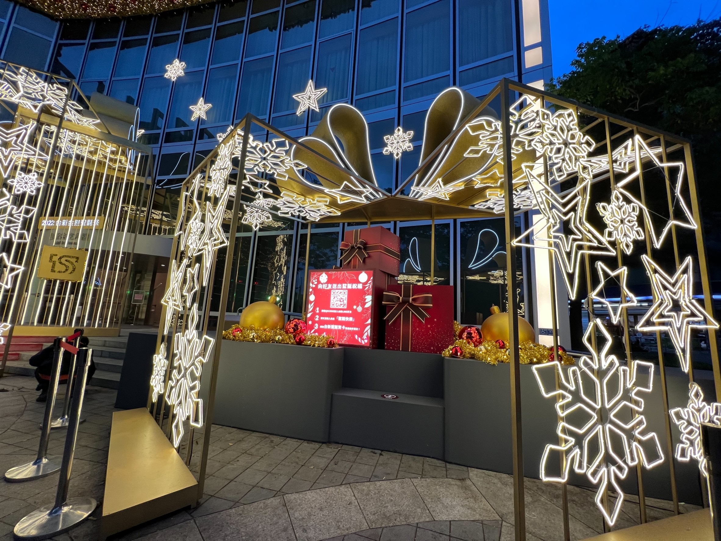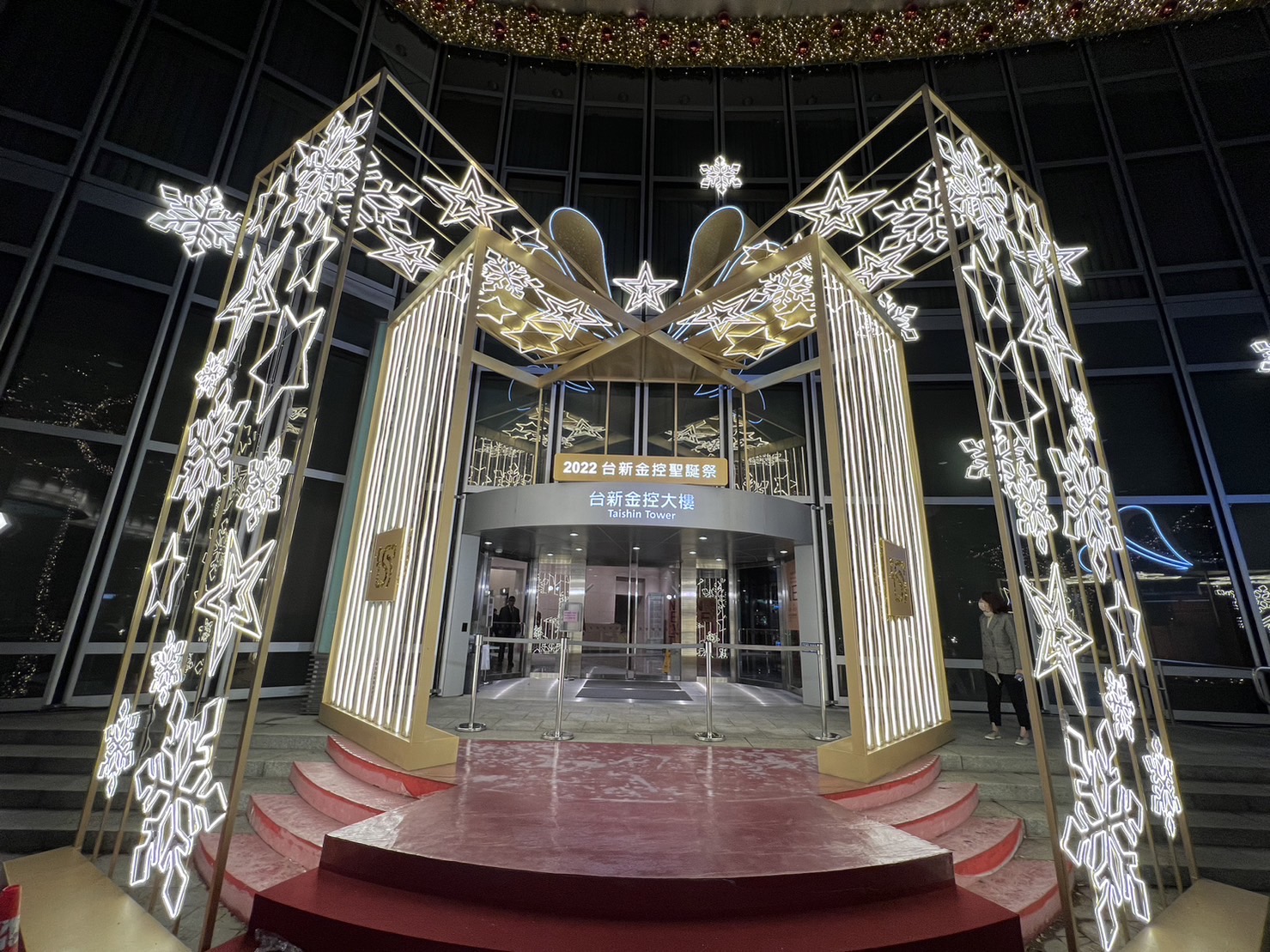 2022年台新金控聖誕祭登場!今年連續第十年舉辦,以「璀璨台新‧愛(i)永續」為主題,突破以往打造50公尺超高聖誕燈飾,巨型發光緞帶搭配閃亮禮物盒佈置,與一旁的LED永續聖誕樹,合體形成超夢幻打卡點,照亮臺北市仁愛圓環夜空。熱門的聖誕限定專屬優惠合作商戶也突破40家,並重磅推出綠色運具主題的「綠行挑戰賽」,萬點LINE POINTS周周抽,帶來暖心且別具意義的綠色聖誕祝福。 台新金控今(7)日於仁愛圓環旁總部大樓舉辦「2022聖誕祭點燈儀式」,逾百人現場齊聚,並同步於YouTube線上直播。由台新金控董事長吳東亮帶領眾人讀秒倒數,喊出「璀璨台新‧愛(i)永續」,於歡樂聲中點亮聖誕燈飾,包含高15公尺的LED永續聖誕樹、充滿豐富優惠的聖誕光廊,以及包覆於總部大樓的全新巨型緞帶燈條造景,高達50公尺、逾10層樓高,與正門口象徵溫暖祝福的發光禮物盒佈置相互輝映。現場也舉行「聖誕限定快閃市集」,攤位多元趣味,伴隨仁愛國小弦樂團演奏的優美應景樂曲,瀰漫濃濃聖誕氛圍。
