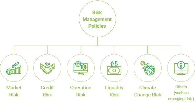 Taishin has risk management policy in place to control primary risks associated with business operations. The policy also takes into account climate change risk and emerging risk etc.